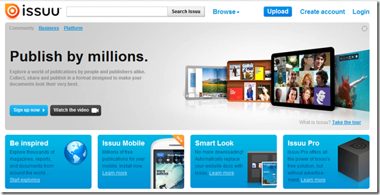 進入這個網站 http://issuu.com/explore點擊右上角的create account